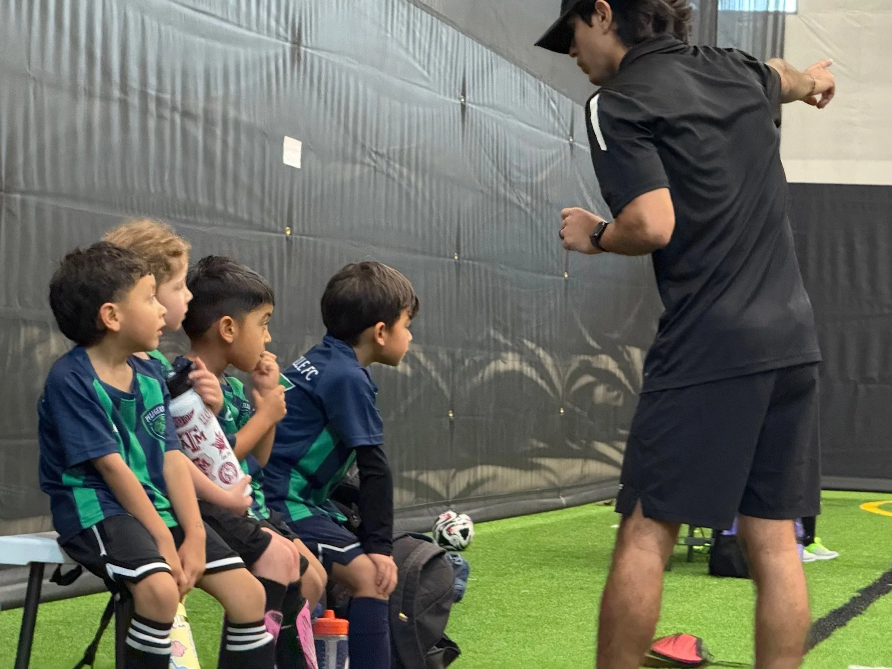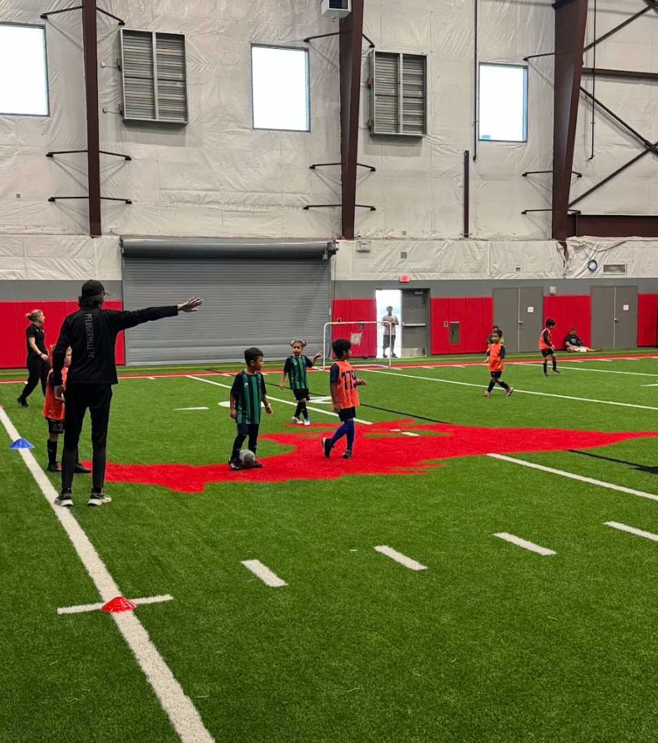 The players in our Winter Indoor League are looking sharp in their new league jerseys! December 13th was the first weekend of league matches and we had a great time! This year PFC has partnered with Manor Senior High to provide a beautiful indoor facility for our Saturday matches. Our kids had tons of space to play on new turf, and parents got to escape the elements.